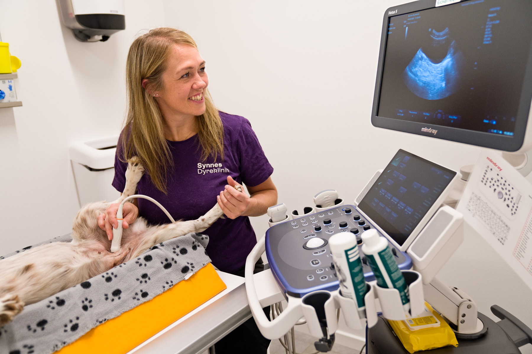 <p class="mb-4">Ultralyd er en sikker og smertefri måde at undersøge dit dyrs indre organer på.</p><p class="mb-4"><strong>Vi bruger ultralyd til:</strong><br/>- Undersøgelse af bughulen (lever, nyrer, milt, blære, tarme)<br/>- Drægtigheds-scanning<br/>- Hjertescanning (ekkokardiografi)<br/>- Vejledning ved prøvetagning</p><p class="mb-4"><strong>Fordele ved ultralyd:</strong><br/>- Ingen stråling<br/>- Smertefrit<br/>- Kan ofte udføres uden bedøvelse<br/>- Giver realtidsbilleder af organerne</p><p class="mb-4"><strong>Praktisk information:</strong><br/>- Pelsen klippes ofte på skanningsområdet<br/>- Det kan være en fordel at faste inden scanning af bughulen<br/>- Undersøgelsen tager typisk 15-30 minutter<br/>- Du får svar med det samme</p><p class="mb-4">Vi har moderne ultralydsudstyr der giver detaljerede billeder af dit dyrs organer.</p>